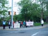 Group gathers on the corner of Frick Park to gain public support for their views on peace and the ending of all wars.