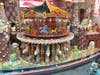 At the center of the castle sits a 2-foot-high model of an old-fashioned carousel, not made of chocolate, but handcrafted just the same. The castle design team of eight people found the idea on Ebay in an old Hammacher Schlemmer catalog, no longer in print. The head toymakers from a company named Suba were about to retire but agreed to make one last custom carousel for Sarris.
