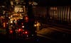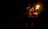 Emergency lights lit up the night sky as crews worked at the scene. The train cars could be seen along stopped on the track along Braddock Avenue in Braddock.