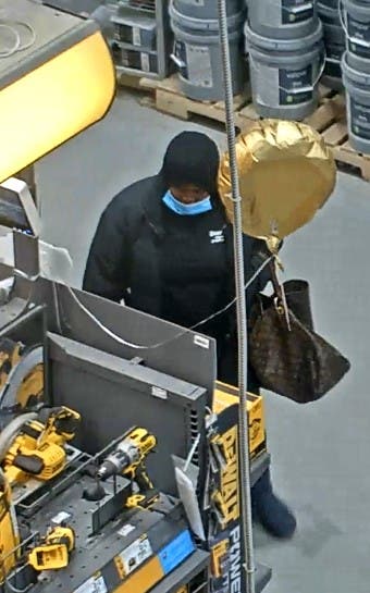 Police said three people were seen selecting items, mainly Dewalt power tools, rodent traps and door locks, and putting them in a cart.