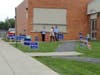 Monaghan was also handing out pamphlets at the high school, one of many voting places where supporters with pamphlets and candidates could be found greeting voters.