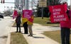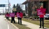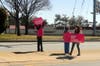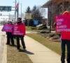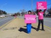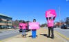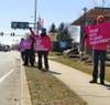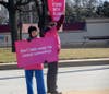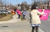 About 15 people wearing pink, "I Stand with Planned Parenthood" T-shirts stood on Sproul Road Thursday afternoon holding signs saying, "Don’t take away my cancer screenings" and "Don’t take away my breast exams."