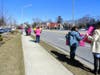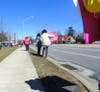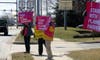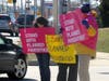 The group, mostly comprised of women, stood on the roadway outside of Meehan’s headquarters for about an hour and received numerous signals of approval from passing motorist who honked in support of their cause.