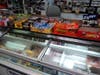 In addition there are refrigerator cases filled with any drink you could possibly want from basics like milk and juice to iced tea, beer and Hugs (these really sugary drinks that I hadn't seen in decades).