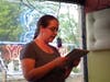 Speth was the first reader for the evening. By day she works as in education administration, but by night she is a poet. Her work is based on personal experiences and observations; the tone is lyrical but narrative.