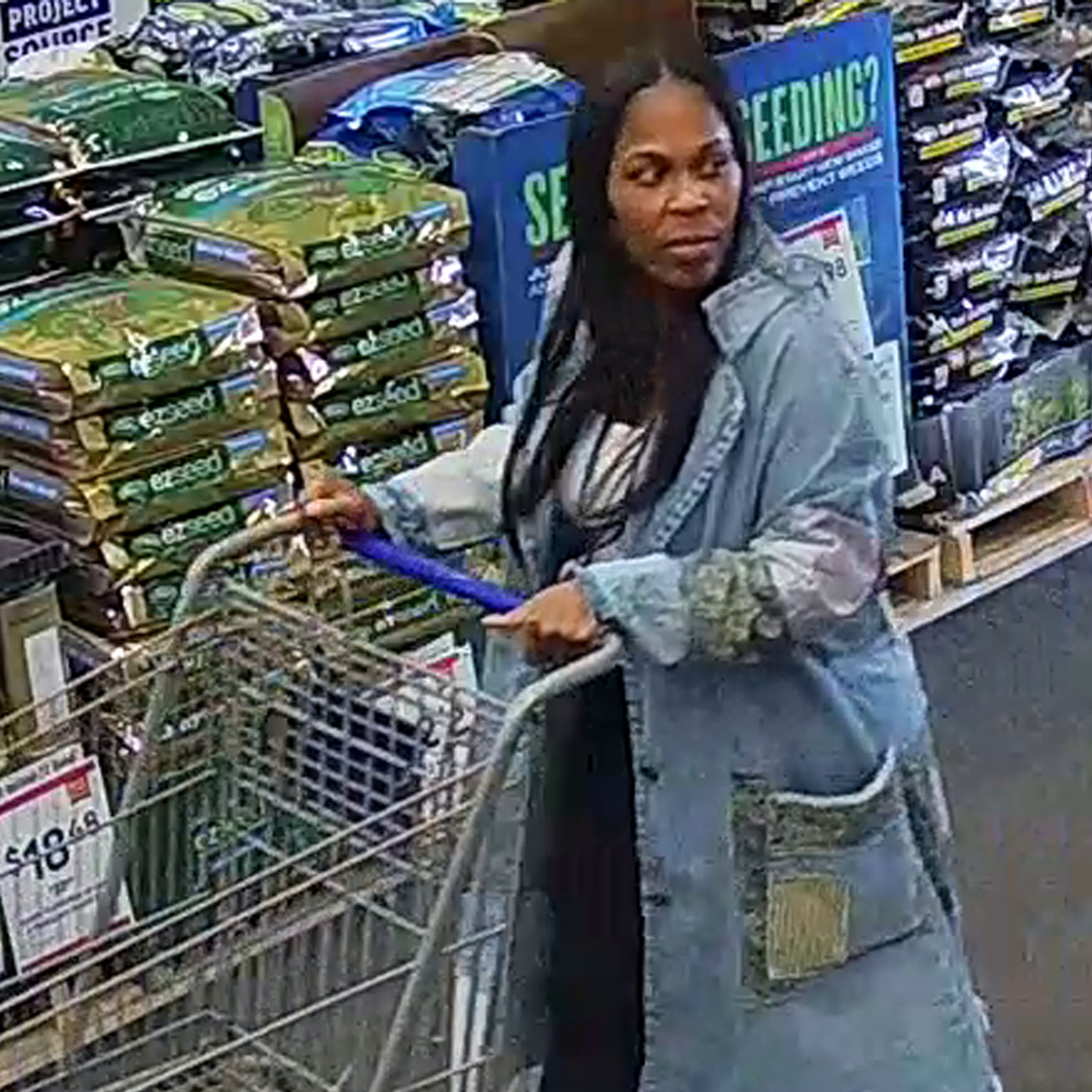 She then bought items before leaving the store in a black Mercedes GLE 350, police said.