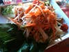 The salad was brimming with julienned strips of crunchy and refreshing green papaya, bright orange carrot, green beans, peanuts and tomatoes. It was all tossed in a bright, acidic, sweet, salty and complex vinaigrette that tied it all together. Thai food is characterized by this balance of different flavors and I could taste lime juice, fish sauce, palm sugar and even some heat from chiles in the vinaigrette.