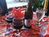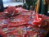 We arrived with a bottle of easy drinking red wine in tow and found parking easily in the lot right around the corner. The pleasant server arrived tableside almost instantly and offered to open our bottle while we looked over the menu. The table settings with ornate napkin foldings, gold silverware and colorful tablecloths were visually striking as were the assorted dashes of color throughout the dining room.