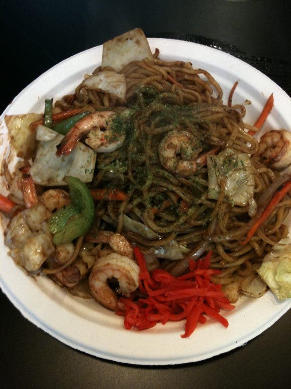 This cash-only Asian eatery has numerous options like steamed dumplings, noodles, ginger chicken and meats on sticks. Vegetarian items appear as well. Click for the review.
