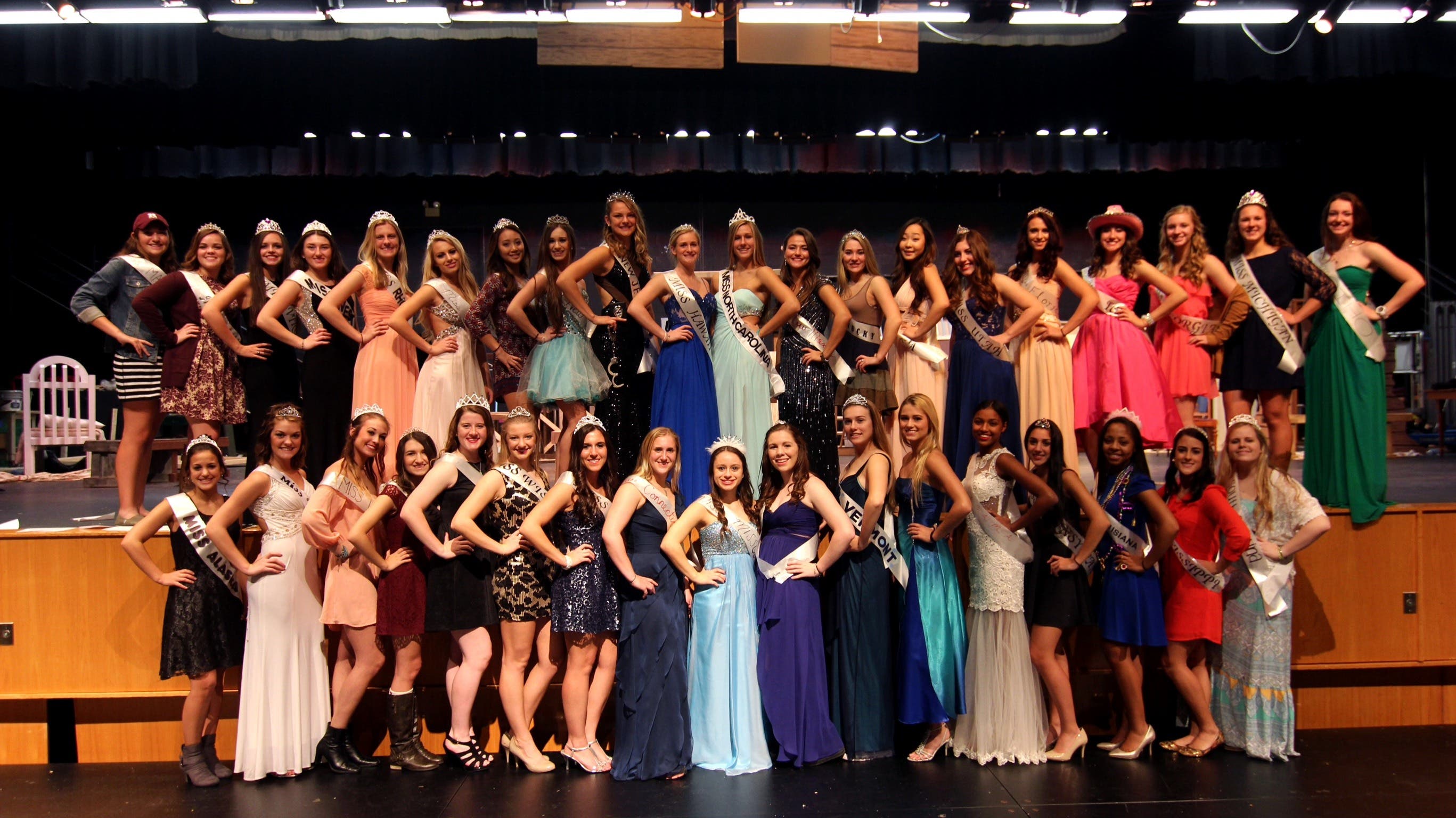 On Friday, 50 senior girls collaborated in a gigantic group effort to come dressed as contestants in the Miss America pageant. Each of the girls, wearing old prom dresses, tiaras and sashes, represented a different state.