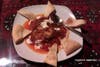 Our second entrée (10.95), also available as an appetizer ($6.95), was “mantu,” Afghan “ravioli” – dumplings filled with ground beef and onion topped with a savory blend of lentils, homemade yogurt, meat sauce, and mint. Perhaps I should more aptly describe it as Chinese dim sum with Afghan ingredients and spices…either way it was exotically delicious.