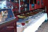 Check out the exotic traditional Afghan costumes, and the large photo of that beautiful young Afghan woman whose unforgettable face was much in the news about 20 years ago. Mellow recorded music from a large collection of Afghan CDs adds to the pleasant, low-key ambiance; or you might get to see one of Moe’s Bollywood videos on the large TV, a more recent addition.