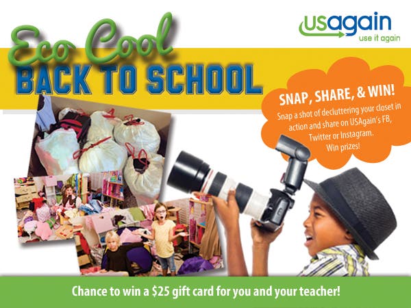 Snap a shot of decluttering your closet in action and share on USAgain's FB, Twitter or Instagram. Win prizes!
