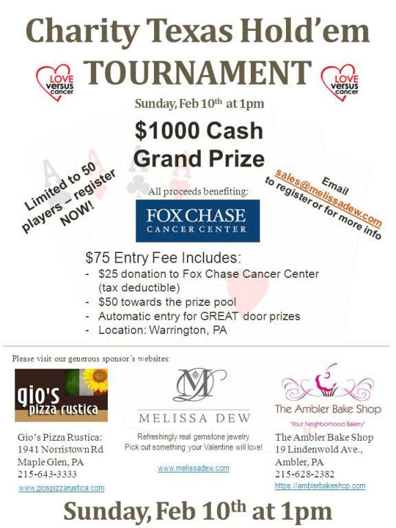 Charity Poker Tournament in Warrington, PA on February 10th at 1pm.