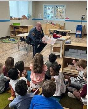 Meanwhile, Police Officer Chris Haber took a break from his patrol duties to read to children at the Chesterbrook Academy during National Reading Day.