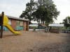 Aside from the plywood covering in place of the roof, badly burned library, charred outdoor playground equipment and melted gym windows, the school seems to have fared relatively well from the blaze, which fire officials said began in an outdoor shed and spread to the school.