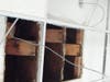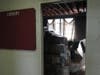 In Melnick’s office, which is situated beside the library, a huge hole is apparent in the ceiling and a large trash can has been positioned to collect any rain that may fall. Her desk and other equipment have been moved on other side of the hole to prevent damage.