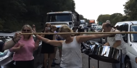 Luckily for the drivers stuck in traffic, band members from Trinidad North Steel Drums were in the jam, too. They got out their instruments and began playing. Limbo and dancing followed shortly after.