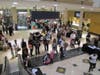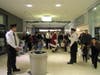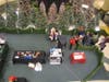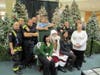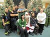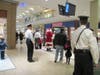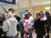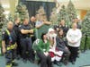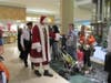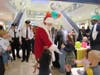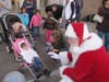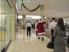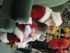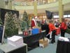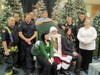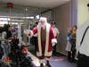 At the lower level of the mall, between Sears and Dick's Sporting Goods, Santa greeted his fans and was escorted through the mall, up the escalator, around the Food Court and finally descending down the escaltor toward his green plush throne near the elevator.