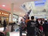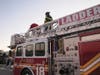 He then went up on the truck top of Ladder 18 and was escorted around the perimeter of the mall, waving at all his fans below.