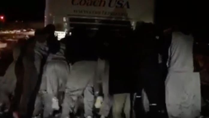 The team posted the following video to YouTube of the team bus-pushing effort.
