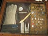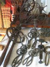 Visitors were kept amused by guessing each implements purpose and function in years gone by. Items ranged from early can openers to corn shellers, old mixers, butter molds, a foot toaster, and a metal baby feeder that the baby sucked from—maybe the first bottle. Ron also has a collection of woven coverlets, local textiles, feed sacks, and clothing from local millers in addition to wooden stamps used to affix markings on grain sacks.
