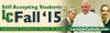 It features Pope Francis alongside students Dana Senour ‘18 and Joe Kelly ‘18 and reads “Still Accepting Students.”