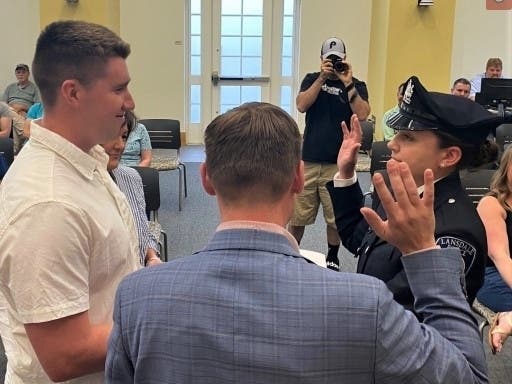 Officer Karly Harney, a Bucks County native, was sworn in by Mayor Gary Herbert.