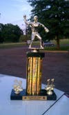 After the players posed for a team picture, each player received their own championship trophy. Assistant coach Scott Williams presented Patch with a trophy of our own, for the coverage and support.