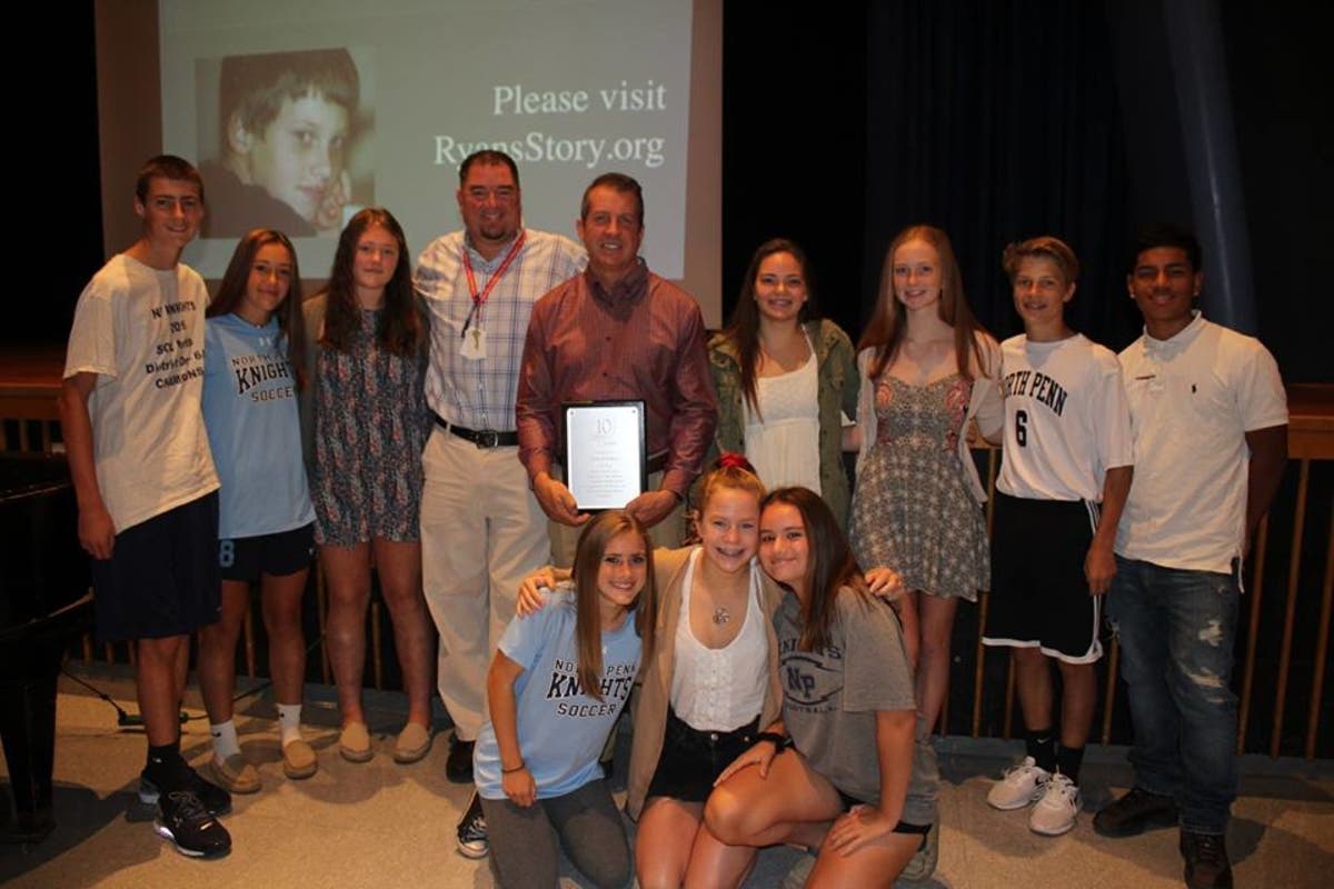 North Penn presented Halligan with a plaque on Thursday, commemorating his 10 years of service to the school district in sharing his story and spreading a positive message.
