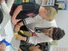 Blocklinger, along with fifth grade teacher Kristin Mellon and the help of cohorts, went around to each student to help them flatten out their papers.