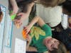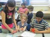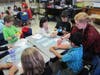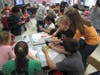Inside Blocklinger’s classroom Friday afternoon – just one of many classrooms taking part in the fundraiser – first grade and fifth grade students sat at clusters of desks and followed along with Blocklinger as she led them through the making of a paper crane.