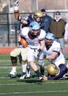 Under the siege of T.J. Smink, Ben Kaplan and company, Magarity coughed up the ball as he battled to break free. He looked down the field for senior wide out Colin Buckley, who racked up more than 175 yards in receptions in the early season 44-27 LaSalle win over the Knights. Cook was quick to pounce on the ball as it hit the turf.