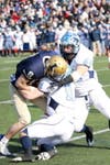 The Knights continued to put the heat on LaSalle, as they drove into Explorers territory on three straight second half possessions. One drive was stopped at the Catholic League champs' 2–yard line with 9:10 left in regulation. Ernst was stuffed on a quarterback keeper that had been successful all day, giving LaSalle the ball in the shadow of their goal posts with the wind at their backs.
