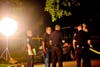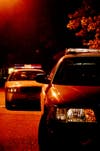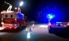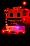 A truck equipped with spotlights has arrived at the scene and is illuminating the area.