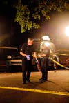 Update 1:56 a.m.: Authorities at the scene are closely examining a bush across the street from the shooting scene.