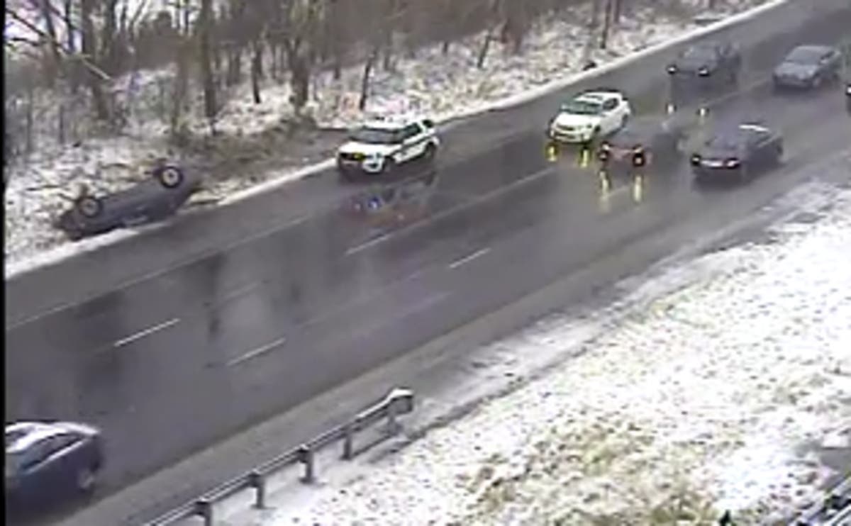 BENSALEM, PA — Icy conditions had state police busy on the region's highways Tuesday morning, including a crash on Interstate 95 in which a car flipped onto its roof.