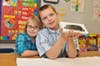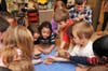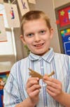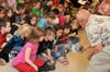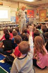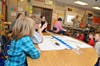 Unlike most museums, the first grade students got to touch and feel the fossil samples that Langer brought to the class. Every child anxiously awaited their turn to see a bone, tooth, scale, jaw fragment or a dinosaur track permanently imbedded in soil. Little whispers were heard all through the room, "Are you finished yet? Can I see it? Can I touch that?"
