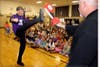 For their efforts, Principal Dave Hughes had to make good on his promise to break a board with his head in a special karate move with the assistance of Action Karate’s Ken Ogborn.