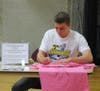 PBU Sophomore Jeremy McAlack was seen painting many of the blank pink shirts throughout the night.