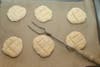 The cookie dough is pretty sticky. Coat your countertop or cutting board with a light dusting of flour. Take cookie dough, about the size of a golf ball, and pat it onto your floured surface. Shape it into a disk about 2½” in diameter and about 3/8” thick. Don’t use too much flour; just enough to keep it from sticking to the surface and your fingers. It also helps to keep the dough cold. I kind of remember Dad rolling the dough out and using a round cookie cutter to make the Log Cabins, but I’m not certain about that. Mine got better as I perfected my shaping technique.