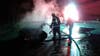 Crews attacked the fire, opening the hood and trunk to give more access to the hoses.