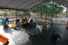 A nursery on the second floor of the barn even has a cozy home-like area with a television and music for those canines who find the sounds to be reminders of comfort from their usual routine. Cats stay in the nursery, too.