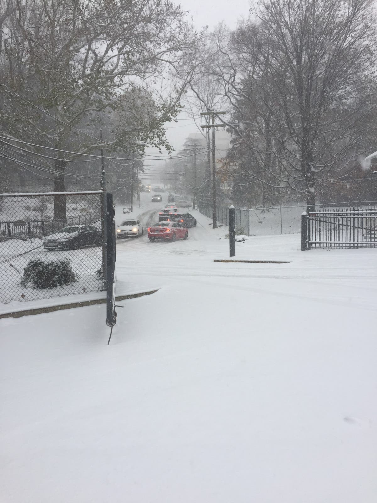 In areas with even slight inclines and hills, traffic was especially heavy, as cars that came to a stop spun out and became stuck when they tried to move again.