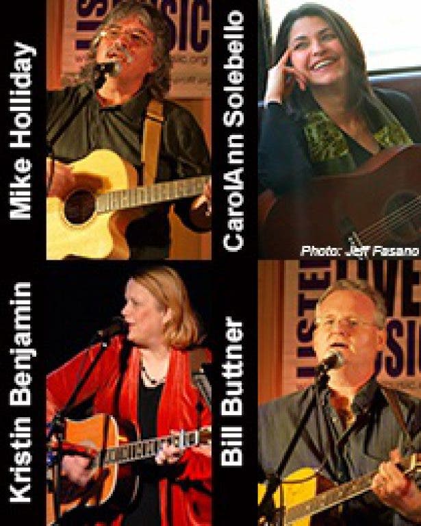 In the true tradition of The Bluebird Cafe in Nashville, TN, LLM seats four singer-songwriters on chairs in the center of the room. The audience is seated, cafe-style, around the performers, who trade stories, songs, harmonies and licks as the night progresses. Join us for this unique concert experience. The February concert will feature artist-in-residence, Mike Holliday, with CarolAnn Solebello, Bill Buttner, and Kristin Benjamin. "Upscale" refreshments will be available. Tickets are only $10 and will be available via our website on 1/1/13, or by sending a check or MO (payable to Listen Live Music) to LLM, PO Box 50, Old Zionsville, PA 18068. Hope to see you there! Doors open at 7:30 and seating is general admission.