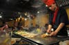 Each table at seats eight people around a huge griddle, where a Japanese chef prepares your dinner right in front of you. Most have playful tricks while they cook like tossing veggies into your mouth or launching raw eggs towards the ceiling and catching them in a hat.
