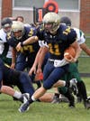 It all started with a tremendous opening kickoff by Lower Moreland’s Jordan Pocrass, who kept George school pinned back in their own territory with a touchback. That kick set the tempo for the Lions opening defensive drive and forced a Cougars punt. After that, it was all Lower Moreland for the rest of the quarter.