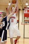 Another milestone loomed as the Skins' Tyler Katz needed 16 points to get his 1,000 point. It appeared that he would get his milestone baskets on foul shots. Tyler went to the line and missed both, but came away with the ball off his second missed foul shot to put it in , causing the gym to go nuts for a couple minutes. His teammates mauled him, cheerleaders shot confetti into the air and Katz hugged his parents and some friends as well before the game resumed.