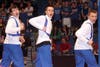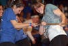 Each year, the student body is split into two teams: red and blue. Gym Night weekend is full of dance exhibitions that are designed and choreographed by the students, and relays between the Red and Blue teams. Each team also votes for their captains. This year, the blue team's captains were Gwen George and Austin Gardener. The red team's captains were Allison Prencavage and Kevin Murray.