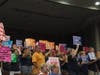 NFT teachers chanted and held up signs at Tuesday's school board meeting.